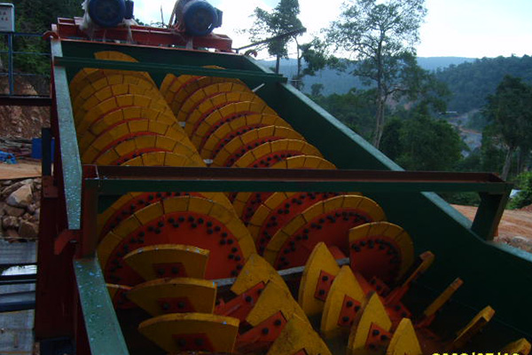 - 清洗:砂石從給料箱進入沉淀池,在轉(zhuǎn)動著的螺旋葉片作用下,使砂石翻滾并相互研磨,除去覆蓋砂石表面上的雜質(zhì),同時破壞包復(fù)砂粒的水汽層,以利于脫水。由多孔板進行的清洗水形成上升水流,將比重小的異物帶到水面溢出堰外,完成清洗作用。